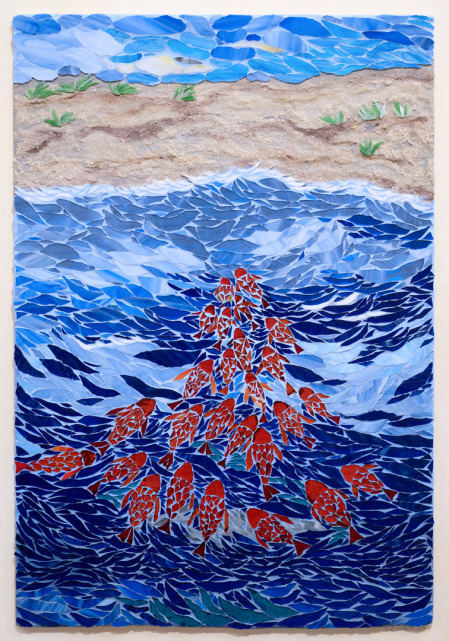 Annegret Koch - Fischschwarm - Flachglasmosaik - 100 x 70 cm - 2025 Fotografie: Katharina Hansen-Gluschitz